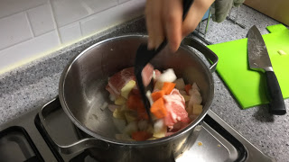 4. 양파가 투명해지고, 고기가 익었다 싶으면, 후추와 소금으로 약간만 간을 합니다.